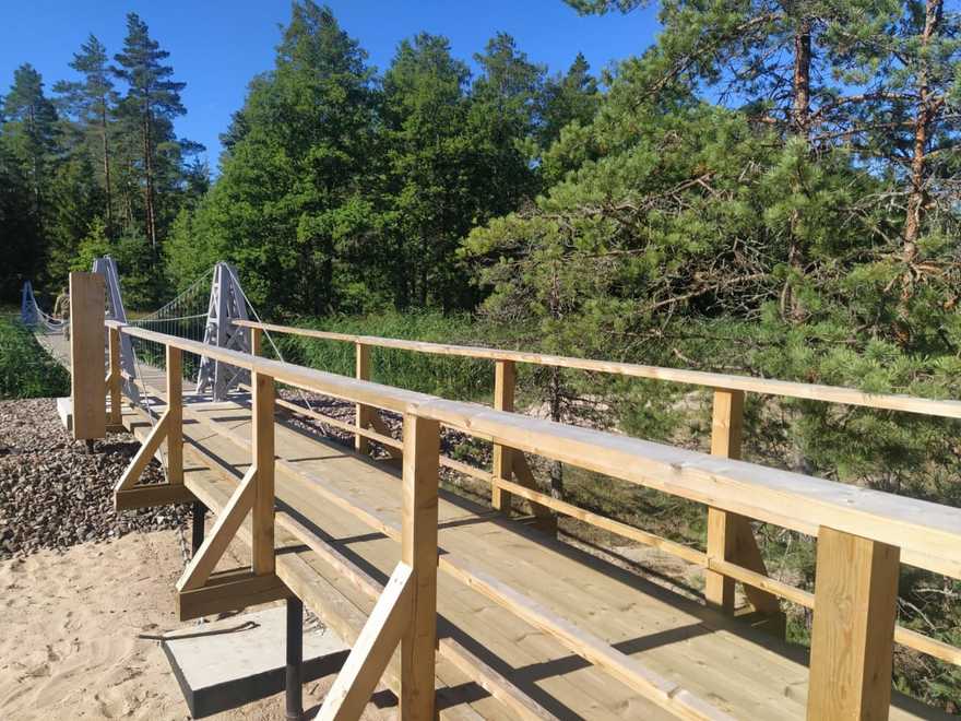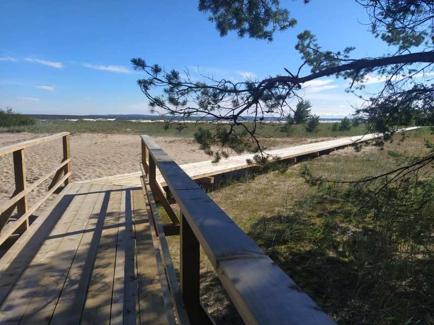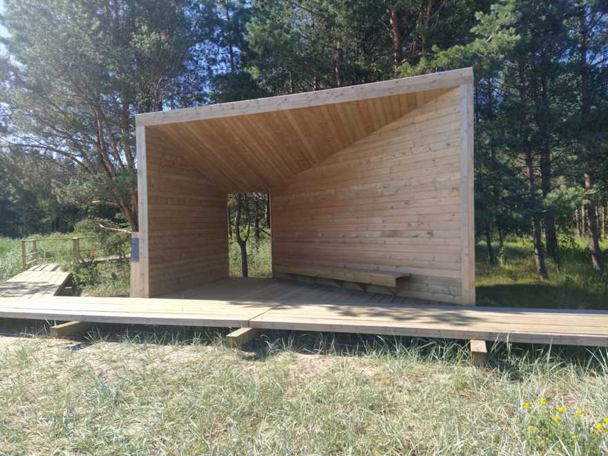Посетители смогут не только прогуляться по обустроенной тропе, но и побывать в павильоне «Рупор». Широкой частью он обращён в сторону Лужской губы, поэтому все окружающие звуки — шум ветра, плеск волн и шелест травы — можно услышать с одинаковой силой одновременно.