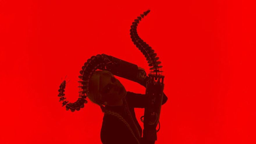 «Синтетическая морфология» (Анастасия Алёхина) — хореография с использованием протезов-щупалец, управляемых мышцами и электроникой.