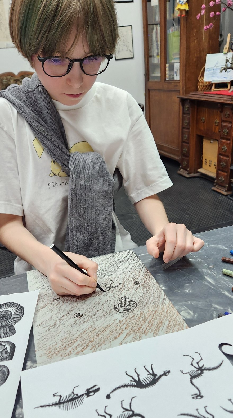 В этой студии предлагают заняться разными техниками творчества: графикой, живописью, мозаикой, акрилом, декором на ткани, керамикой. Не обойдут вниманием и создание приятных сувениров: значков и бижутерии из полимерной глины, эпоксидной смолы и бисера. Так как лагерь тематический, много времени уделят обсуждению, изучению и моделированию орбитальных станций, научных городков, лагерей нефтяников, геологов, палеонтологов. Еще обещают организовать бумажный театр, где можно будет познакомиться с самыми древними обитателями земли и осуществить археологические «раскопки» на бумаге.