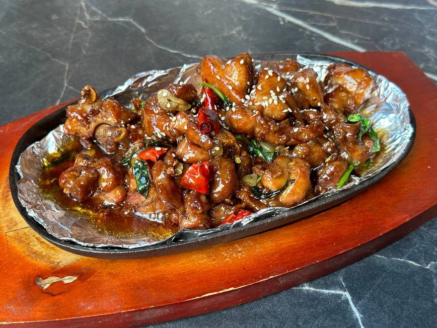 В основном меню обилие закусок: от салата с черными древесными грибами Муэр до рулетиков с уткой и манго и запеченных мидий. На горячее тут подадут жареного цыпленка с перцем чили, а также свинину и утку по-пекински, всевозможные морепродукты и блюда из говядины и баранины.