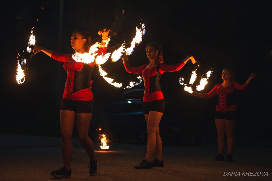 - фаер-шоу с участием мотоциклов, завораживающее и сногсшибательное представление