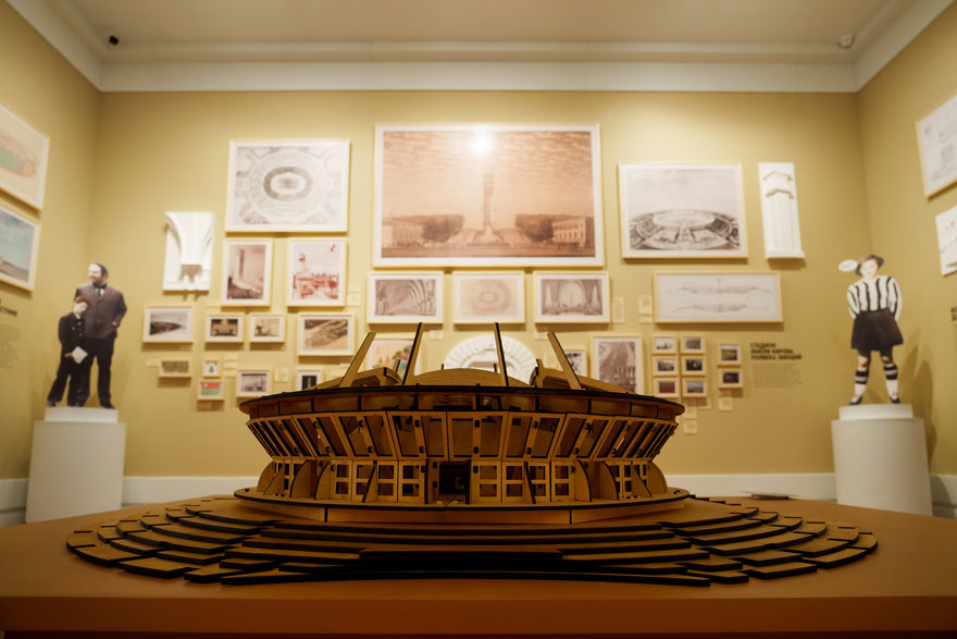 Особенное внимание экспозиция уделяет трагическим годам войны и блокадным футбольным матчам. Отдельные залы посвящены и спортивным стадионам, где играл «Зенит» – например, здесь можно увидеть множество эскизов исторического стадиона им. Кирова на Крестовском острове. Ну и конечно, не забыты болельщики – на выставке рассказывают об истории фанатского движения и показывают историческую фанатскую атрибутику.