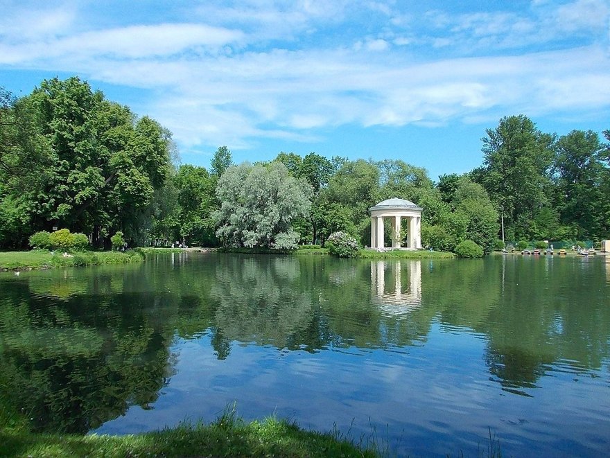 Главный вход в парк украшают фонтаны и ухоженные клумбы. Это место наполняют вековые деревья, водоёмы и площадки для отдыха. В глубине парка есть лодочная станция, с причала которой каждый желающий может отправиться на романтическую водную прогулку на лодке или катамаране.