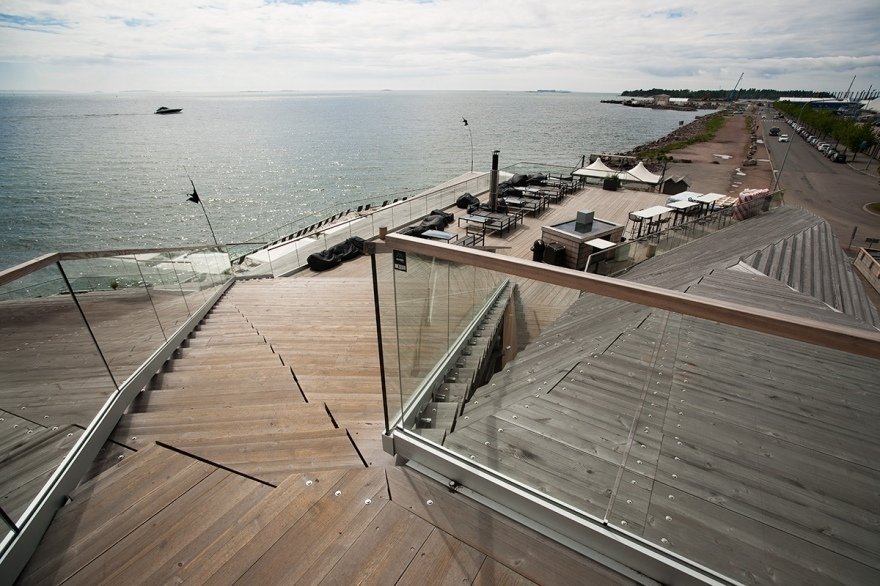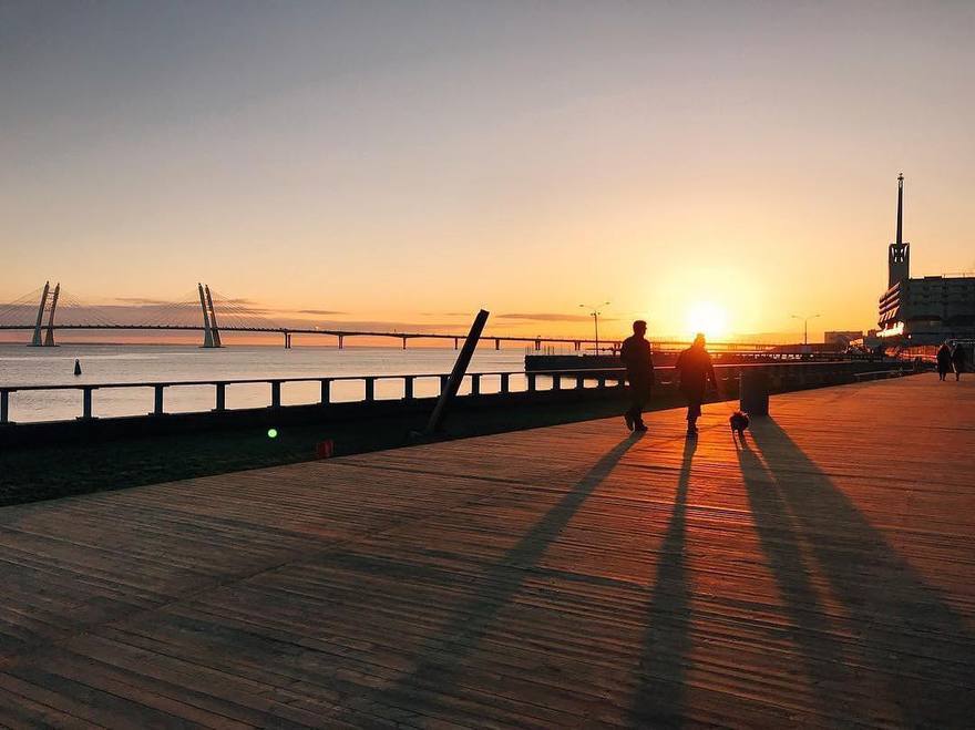 Деревянный настил, футуристические скамейки и шезлонги, шикарный вид на красивый мост и залив — это место любимо многими горожанами. Неподалёку от набережной находится просторная детская площадка и парк.