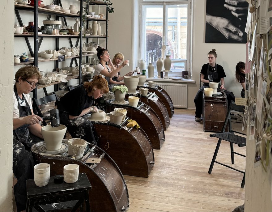 Просторные и светлые мастерские помогут петербуржцам приобщиться к творчеству — мастер-классы по гончарному делу и керамике проводятся каждый день. Также можно записаться на специальные курсы — принимают учеников с трёх лет.