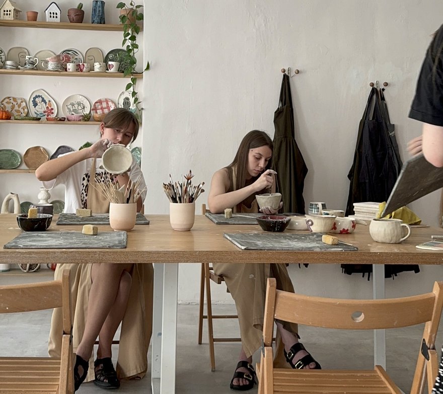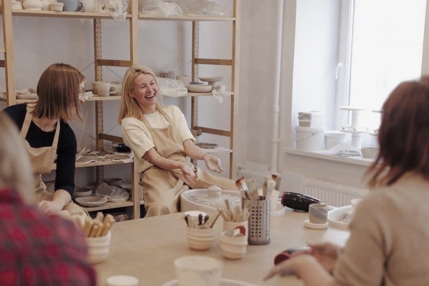 Оформленное в скандинавском стиле пространство предлагает интенсивы по лепке посуды — кружек, тарелок и ваз. Мастер-класс состоит из двух частей: на первом занятии гостей студии учат непосредственно лепке, а на втором — глазуровке изделий.