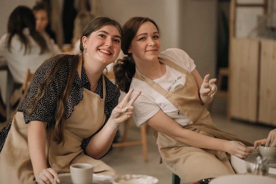 Гости студий создают собственные произведения искусства, даже не имея опыта. Получаются уникальные предметы посуды и декора из глины: вазочки, пиалы, забавные кружки и даже незамысловатые чайники.