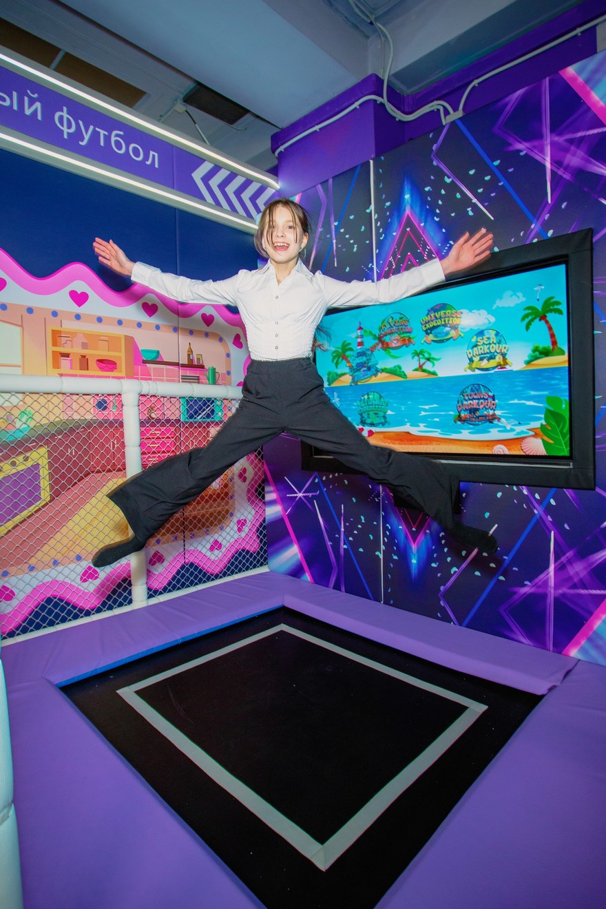Отдельное внимание — интерактивным аттракционам. Здесь работает редкий для Петербурга батут с дополненной реальностью: ребёнок прыгает и одновременно управляет персонажем на огромном экране — настоящий микс движения и цифрового приключения. А в бассейне с шариками можно меткими бросками «расстреливать» забавных монстриков на экране. Формат «Вселенной чудес» подойдёт и для обычного выходного, и для дня рождения — в пространстве предусмотрены отдельные комнаты для праздников.