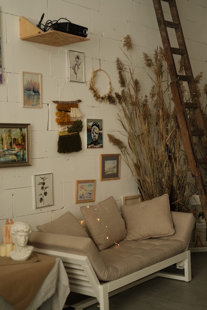 Две просторные комнаты для соло- и семейных фотосессий. Зал «Уют» выполнен в стиле эко-минимализма, есть бумажные фоны, кровать и декоративная зона с сухоцветами. Зал «Винтаж» наполнен старинной мебелью и подойдет для популярных сейчас ретро-съемок. В каждой комнате панорамные окна и свободная гримерная студия.