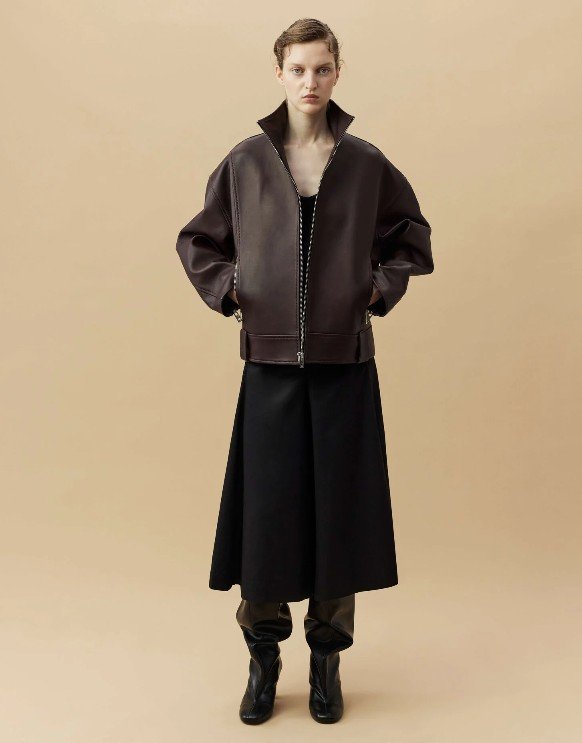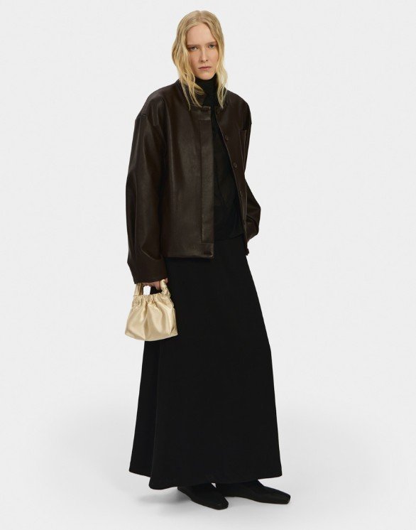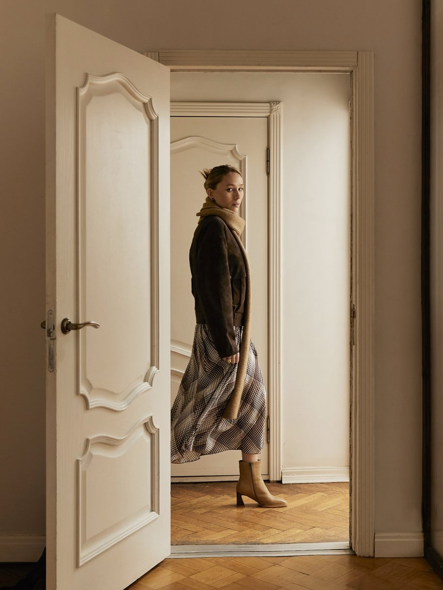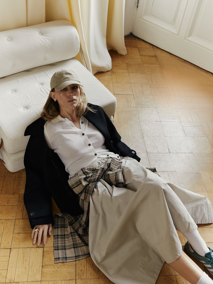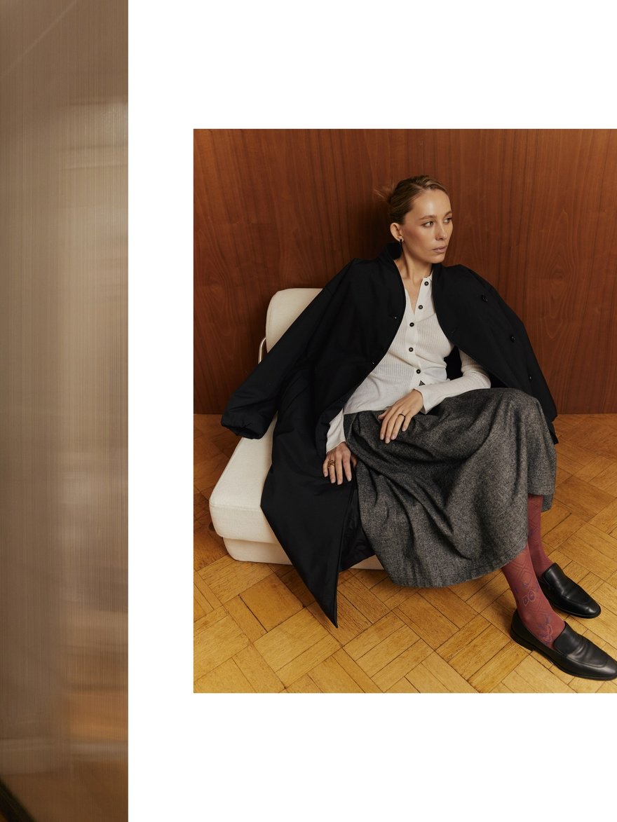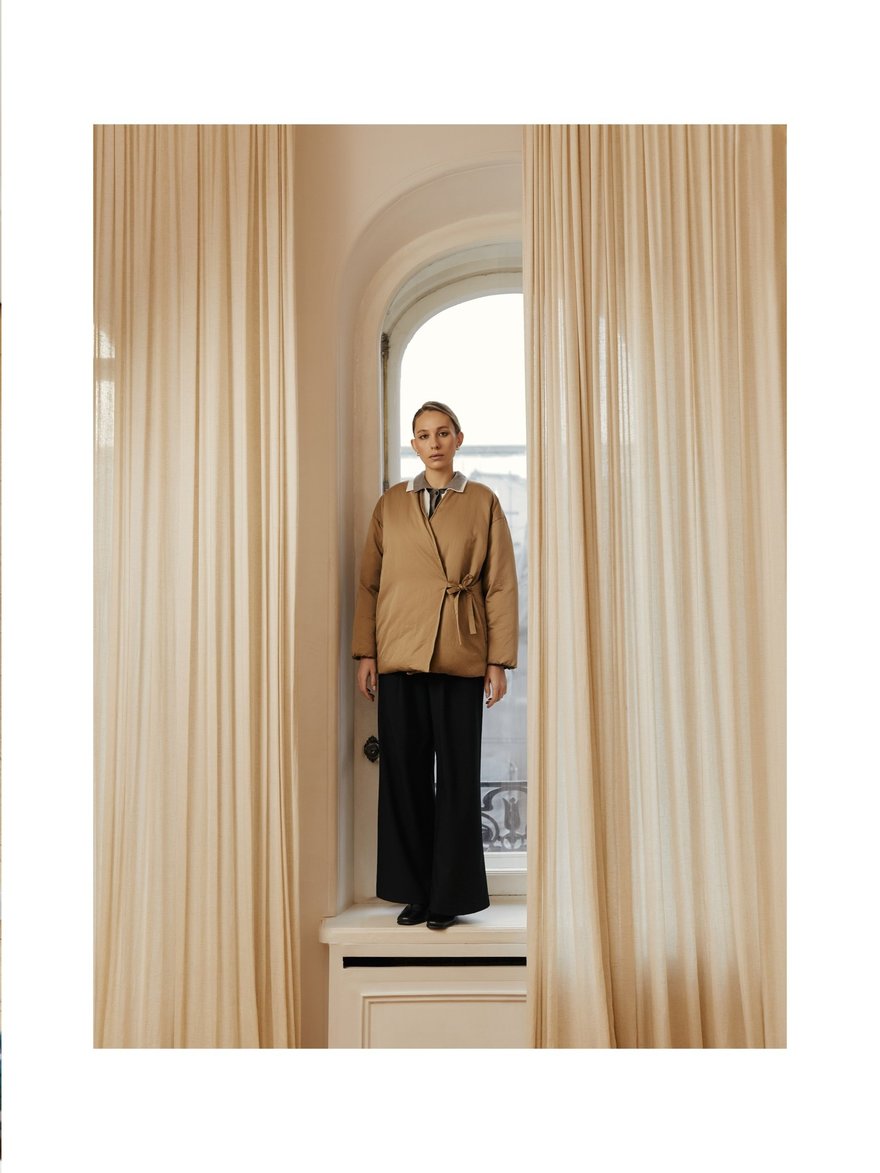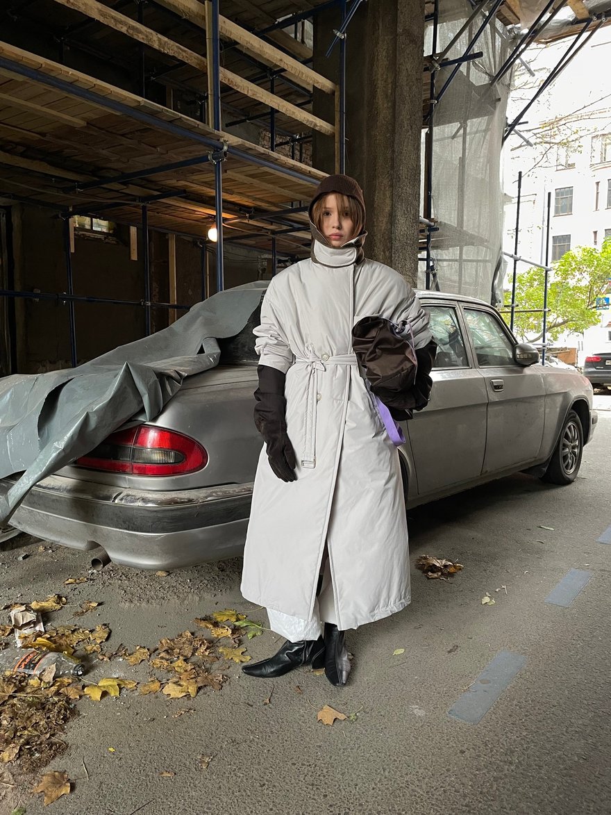 Кожа здесь звучит как манифест — плотная, фактурная, с характером и лёгкой винтажной потёртостью. Bats, основанный в 2017 году Марией Калашниковой, сделал ставку на oversize-косухи, дублёнки и тренчи из натуральной кожи, которые выглядят одновременно брутально и универсально. Многие модели выполнены в формате one size или имеют регулируемый крой, благодаря чему легко садятся на разные фигуры. Землистая палитра — от бежа и коричневого до глубокого бордо и зелёного — отсылает к природным ландшафтам, а собственное производство в Петербурге позволяет держать фокус на качестве и долговечности. Это тот редкий случай, когда верхняя одежда становится главным акцентом образа на годы вперёд.