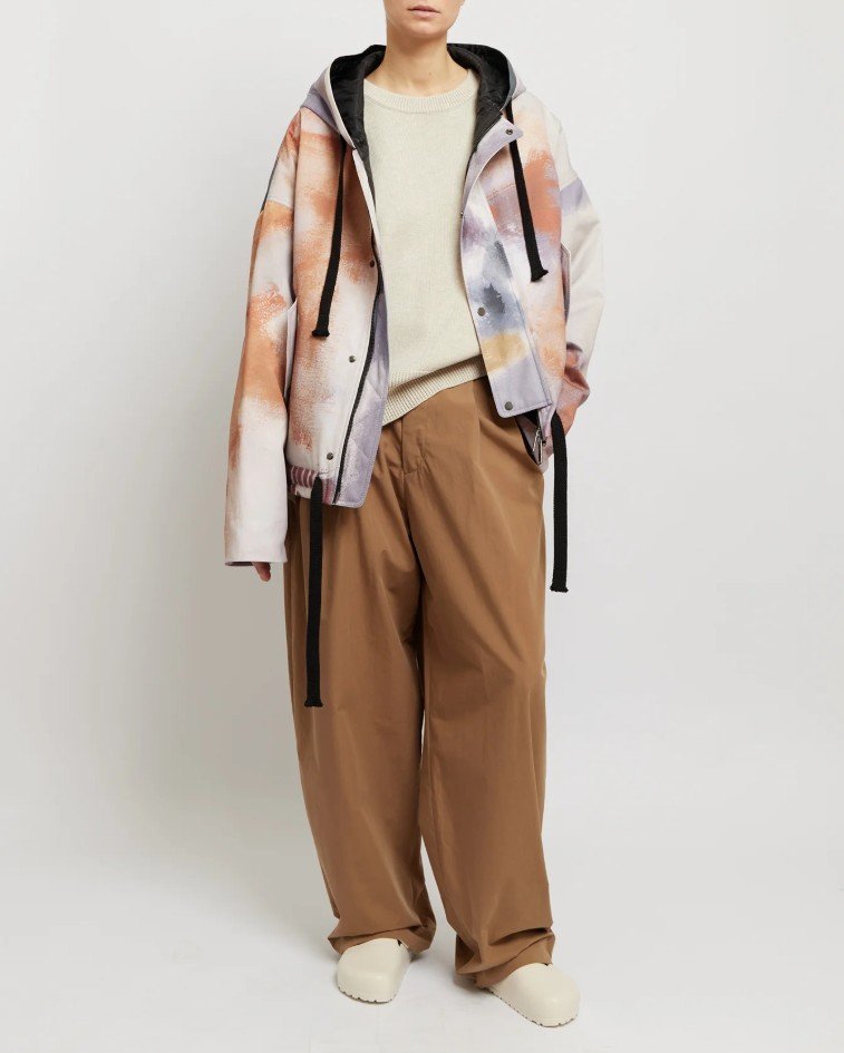 Если город — это зона повышенной турбулентности с ветром, дождём и резкими перепадами температур, то KRAKATAU предлагает к нему полноценный «набор выживания». Основанный в Петербурге в конце 1990-х, бренд сделал ставку на технологичную верхнюю одежду с футуристичным характером: плащи, парки и куртки со скрытыми и магнитными застёжками, продуманной системой карманов, съёмными деталями и сложной архитектурой капюшонов. Мембранные материалы, инновационные способы окрашивания и выразительный техно-дизайн выделяют вещи KRAKATAU на фоне привычного стритвира, а утилитарность остаётся главным принципом — эта одежда создана не для витрины, а для реальной непогоды и динамичной городской жизни.