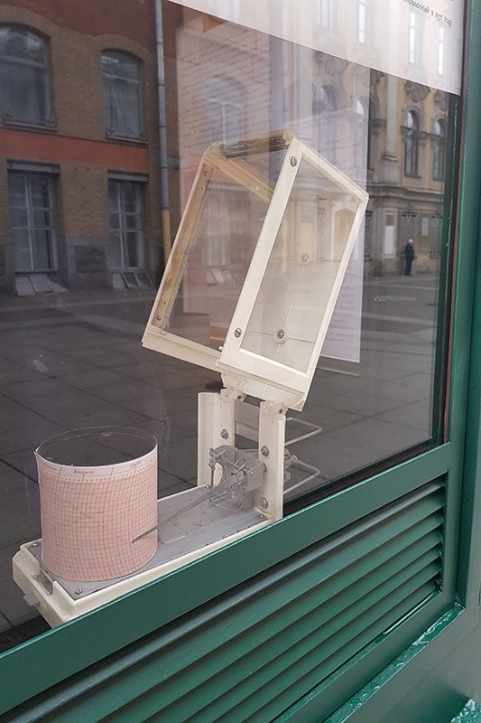 На стенках павильона были размещены таблички с описанием и назначением метеорологических приборов. Но в 1930-е годы Лансере был репрессирован, а его метеопавильон демонтировали и перенесли на Елагин остров, где он простоял около 70 лет. В 1997 году часы восстановили и снова поставили на Малой Конюшенной.