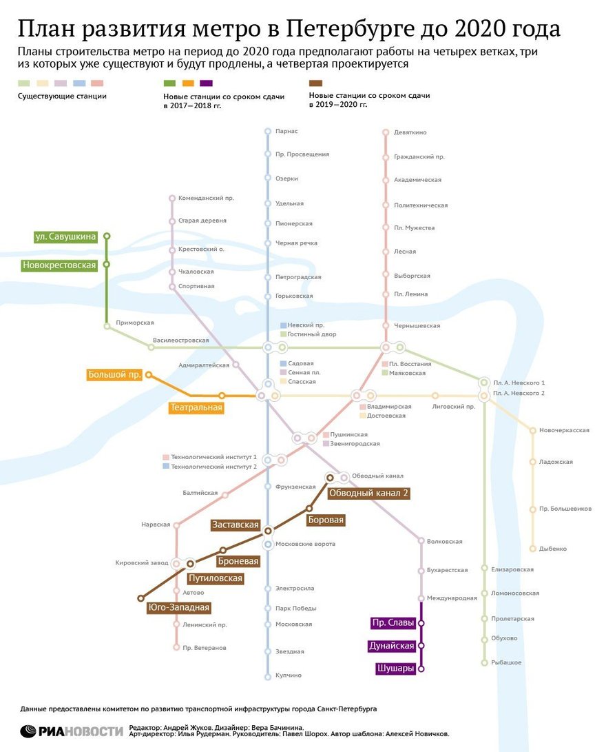 На сайте «РИА Новости» опубликовали схему метрополитена, которую пассажиры петербургской подземки будут ежедневно лицезреть в метро уже к 2020 году.