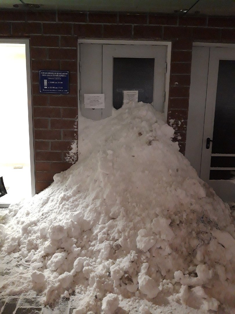 Фотографии огромных сугробов перед дверьми коммунальщиков появились в социальных сетях. Большинство пользователей одобрили такой метод борьбы с недобросовестными службами, однако некоторые петербуржцы отмечают, что снегом завалили в том числе пожарную лестницу.