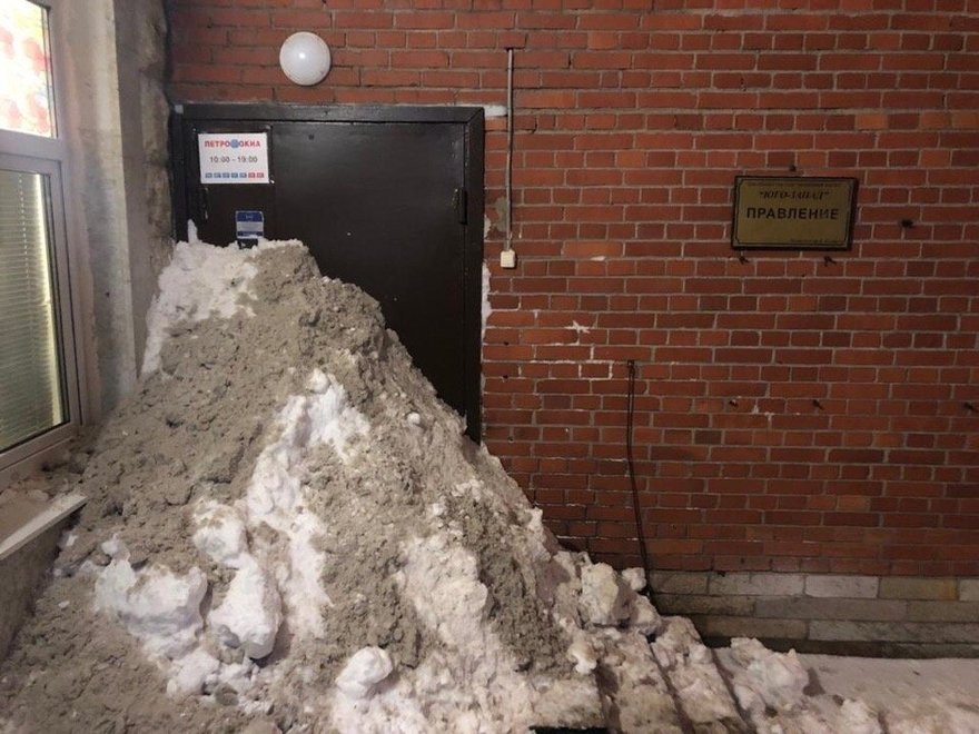 Вход засыпали в офисы ТСЖ «Юго-Запад» и УК ЖК «Ленинский парк».