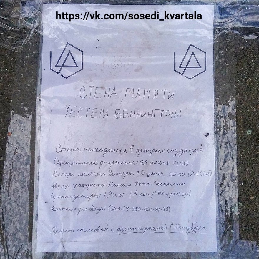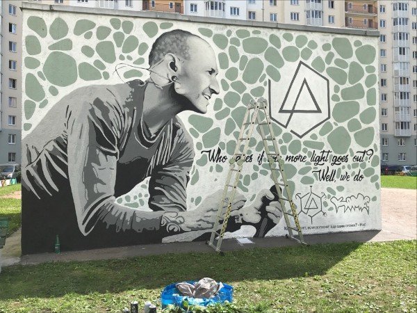 Честер Беннингтон ушёл из жизни 20 июля 2017 года. К памятной дате в Петербурге и решили посвятить ему граффити. Автор рисунка — Максим Касаткин (Koma).
