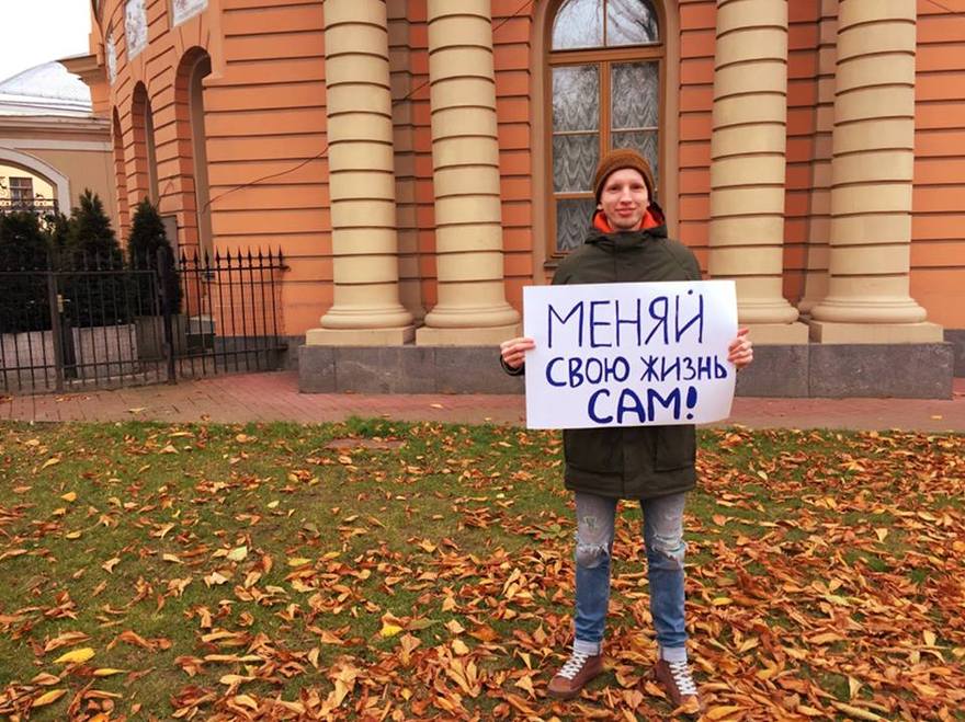 В акции приняли участие четверо мужчин из Петербурга, которые сфотографировались на улицах города, держа в руках позитивные плакаты аккурат противоположного транспарантам акции «Увы-парад» содержания. Петербуржцы предложили менять свою жизнь самостоятельно и радоваться ей.