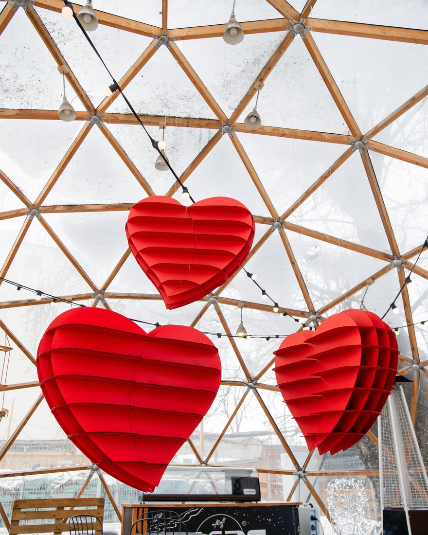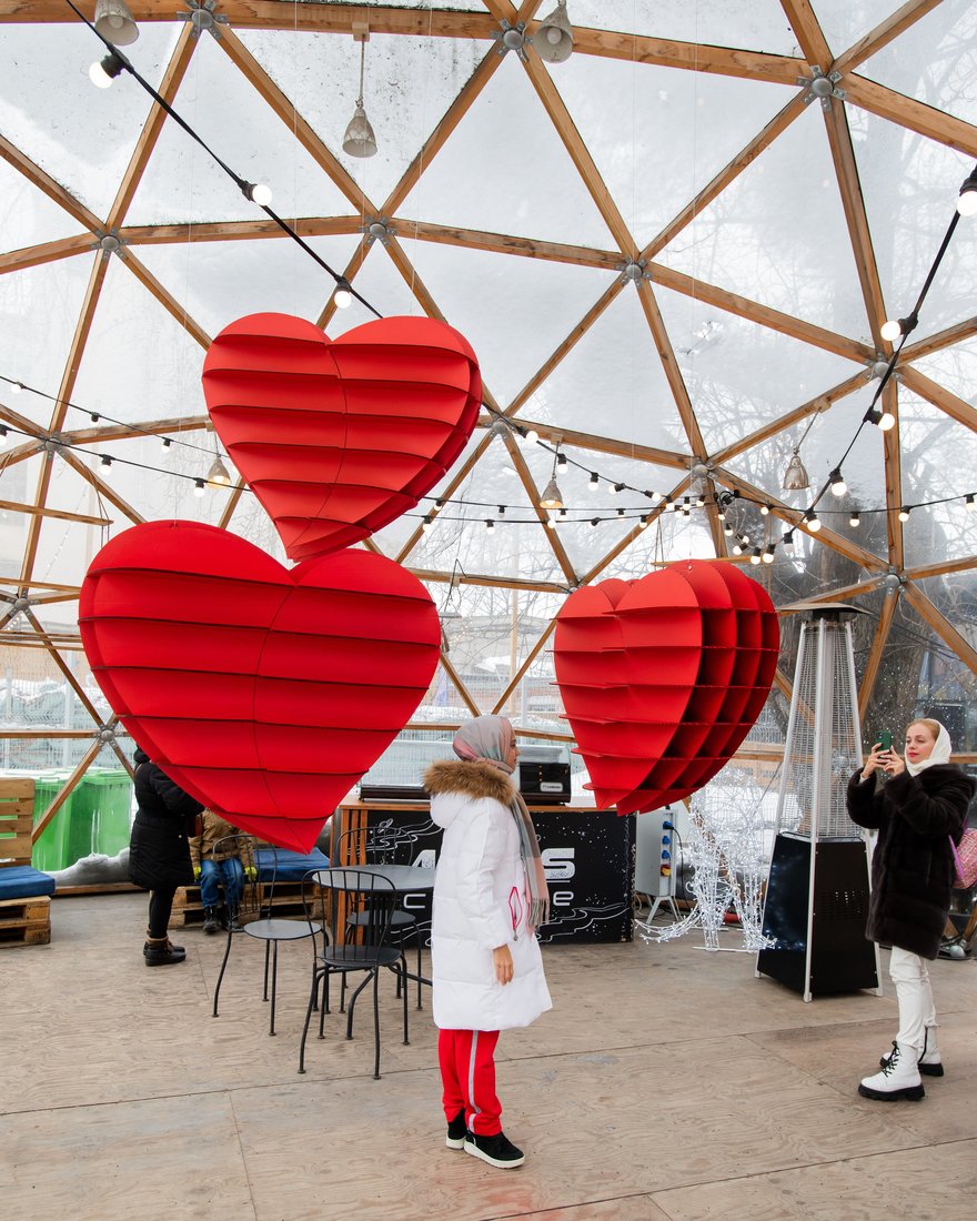В преддверии Дня святого Валентина внутри стеклянной сферы в уютном дворике «Планетария №1» появился арт-объект — большие яркие 3D-сердца, воспевающие любовь и всех влюблённых. Он уже пользуется большой популярностью у жителей города.