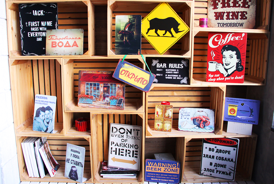 Разумеется, одними жестяными табличками «Жесть» не ограничивается. За три года своего существования компания пополнила свой ассортимент маркерными и грифельными досками, декоративными магнитными картами мира и металлическими календарями с магнитными курсорами. Кроме того, последняя новинка от «Жести» — деревянные таблички. Все это станет чудесным дополнением любому помещению, переводя декоративные элементы петербургской лавки в разряд настоящего маст-хэва.