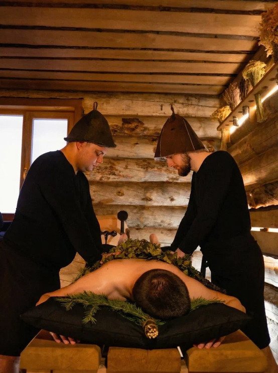 Отдельное внимание уделено банным программам. Все они авторские и адаптируются пармастерами под каждого гостя — для расслабления, восстановления сил или эмоциональной перезагрузки. Также вас ждут холодная и теплая купели: в холодную приятно окунуться для контраста при парении, а в теплой можно расслабиться, вдыхая аромат трав и хвойных веток.