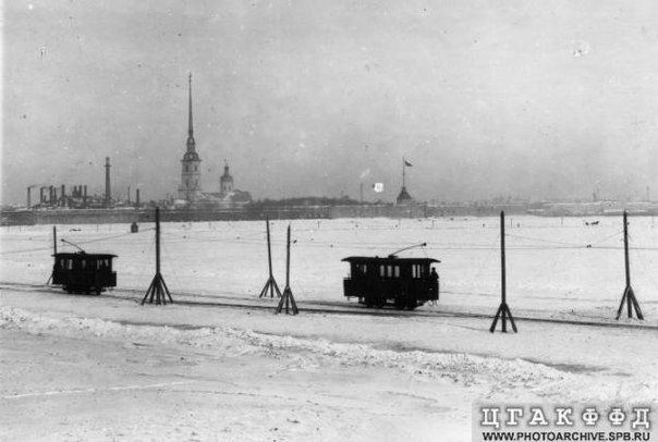 И вот в 1895 году Финляндским обществом легкого пароходства было открыто зимнее движение трамваев. Прямо по льду Невы проложили однопутную колею с разъездами, в лед были вморожены столбы с электрическим проводом, благодаря чему вагоны вмещавшие в себя по 20 пассажиров, могли двигаться со скоростью до 20 км/ч. Маршрутов было четыре: от Сенатской площади к Васильевскому острову (к Академии художеств), от Дворцовой набережной к Мытнинской набережной, от Суворовской площади к Выборгской стороне и от Суворовской площади к Петербургской (ныне Петроградской) стороне. Проезд стоил 3 копейки. Ледовый трамвай пользовался большой популярностью у жителей и гостей города – за сезон он перевозил около 900 тысяч пассажиров. И при том за все время эксплуатации – с 1895 по 1910 годы не было зафиксировано ни одной хоть сколько-нибудь серьезной аварии.