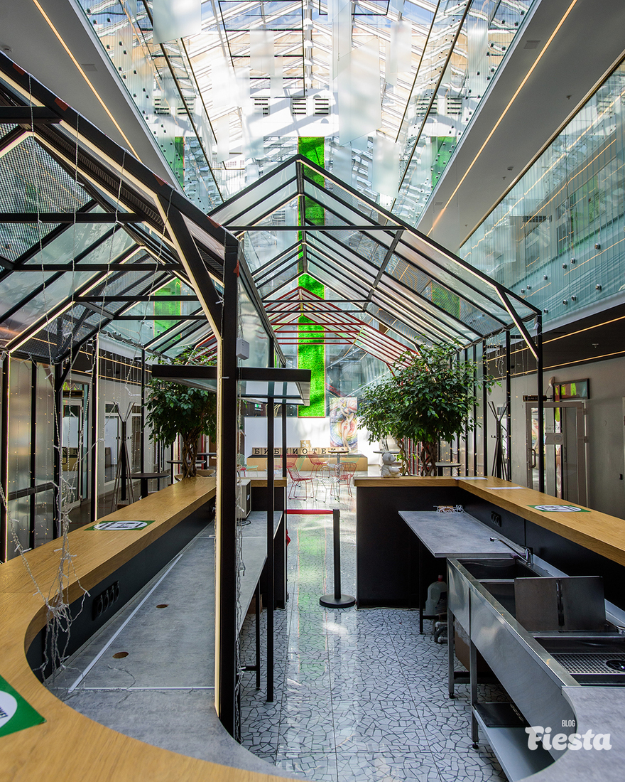 После работы в офисе или в коворкинге любой гость может выбрать кафе или ресторан по своему вкусу: азиатское бистро Joly Woo, итальянское кафе Amici, ближневосточный стрит-фуд LABKEBAB, кофейня 8line coffee и кафе The favorite breakfest с завтраками целый день.