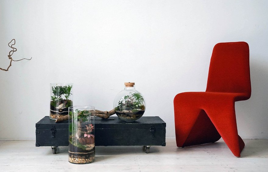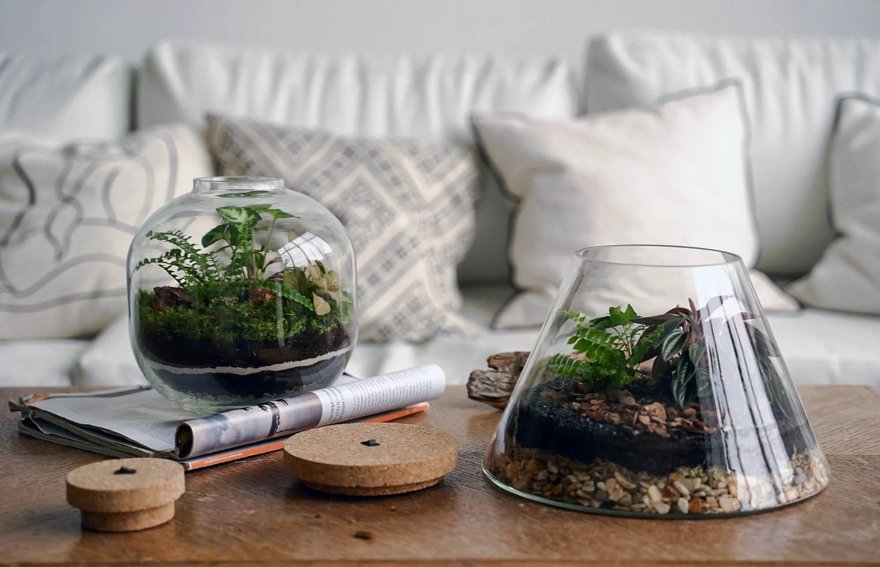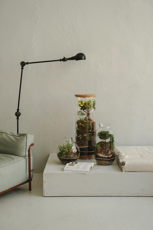 Основной продукт Neo Pure — это автономные мини-сады в стекле. Закрытые флорариумы представляют собой почти самостоятельную экосистему: внутри поддерживается нужная влажность, происходит естественный круговорот воды, а уход сводится к редкому поливу — примерно раз в два-три месяца. Для нормального роста растениям достаточно естественного или искусственного света.