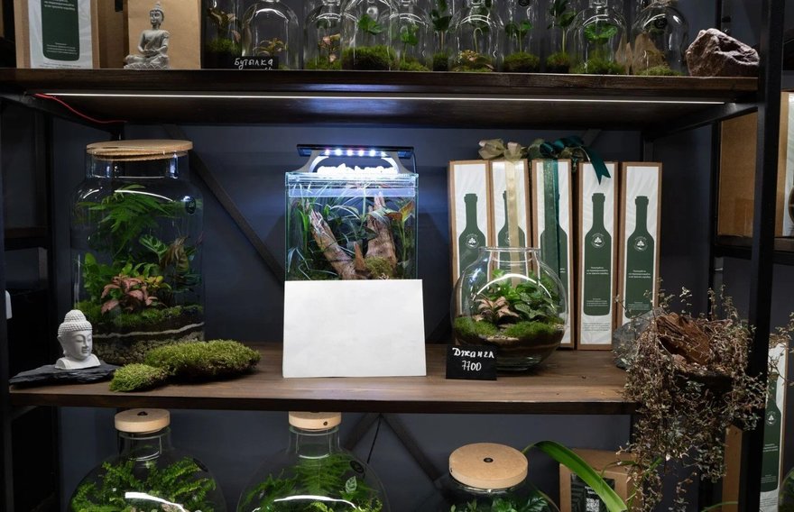 Помимо продаж, в магазине проходят мастер-классы по созданию флорариумов. Занятия рассчитаны на небольшие группы — до шести человек, что позволяет уделить внимание каждому участнику. Формат подходит для встреч с друзьями, семейного досуга и корпоративных мероприятий. После мастер-класса гости уносят с собой собственноручно собранный мини-сад.