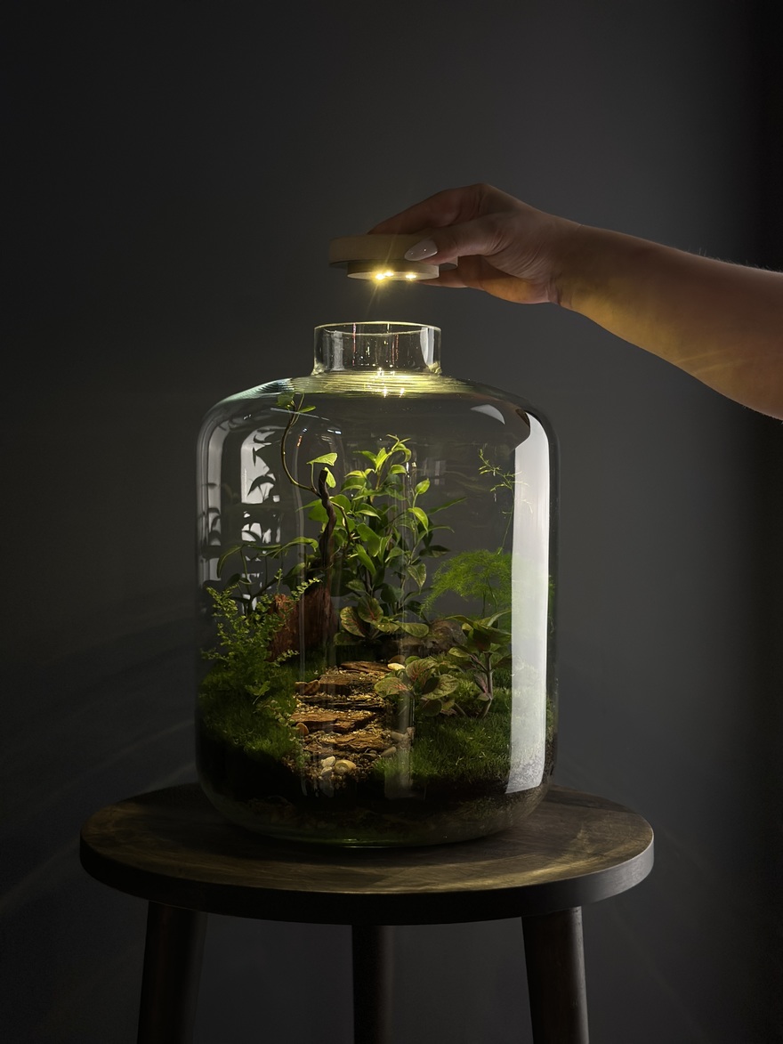 Особенностью бренда стала беспроводная подсветка, встроенная в крышку флорариума. Она работает без подключения к розетке и превращает композицию в мягкий источник света в вечернее время. По словам представителей компании, такая система является уникальной и позволяет использовать флорариум не только как декор, но и как элемент скандинавского уюта в интерьере, воплощение концепции хюгге.