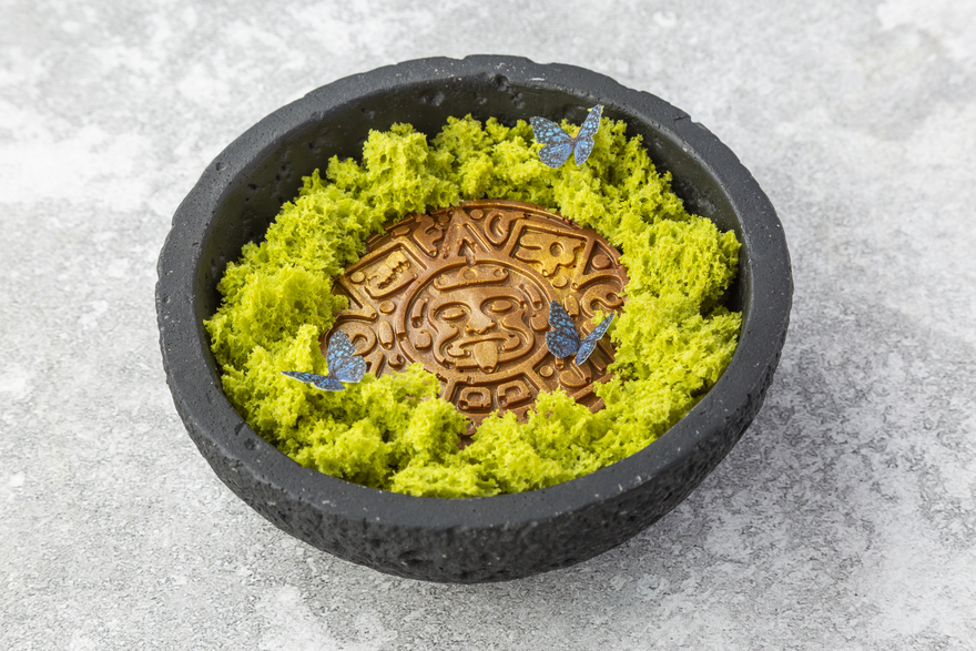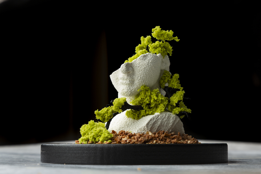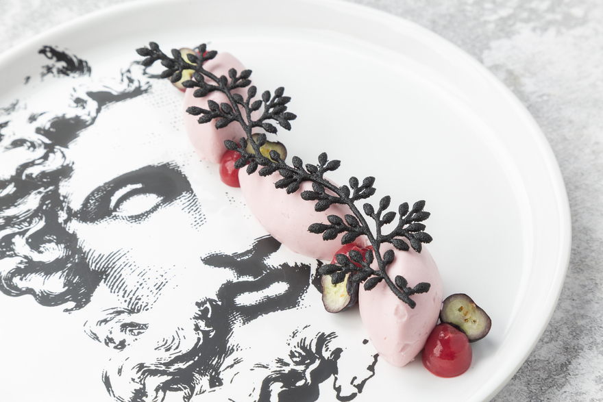 - Десерт с кремом вишневый улун, малиной и гелем личи-роза — 580