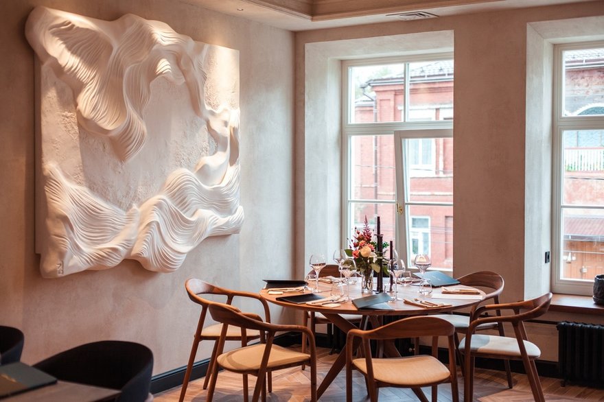 Также здесь есть камерный концертный зал и уединенный коктейльный бар с погружением в мир новых вкусов, эстетику формы и сочетание текстур.