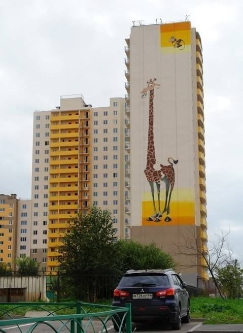 Неподалеку от симпатичного зверька нарисована и зебра Марти, а в скором времени жители Шушар ждут нашествия пингвинов. Зверей на стенах рисуют участники движения «Добро», заручившись поддержкой администрации района. Компания-застройщик собирается продолжить украшать новые дома рисунками. Здание расположено рядом с детским садом, юные шушарцы особенно рады художествам строителей. Поэтому прогуливаясь здесь, нередко услышишь: «Я его знаю! Это Мелман из мультфильма "Мадагаскар"».